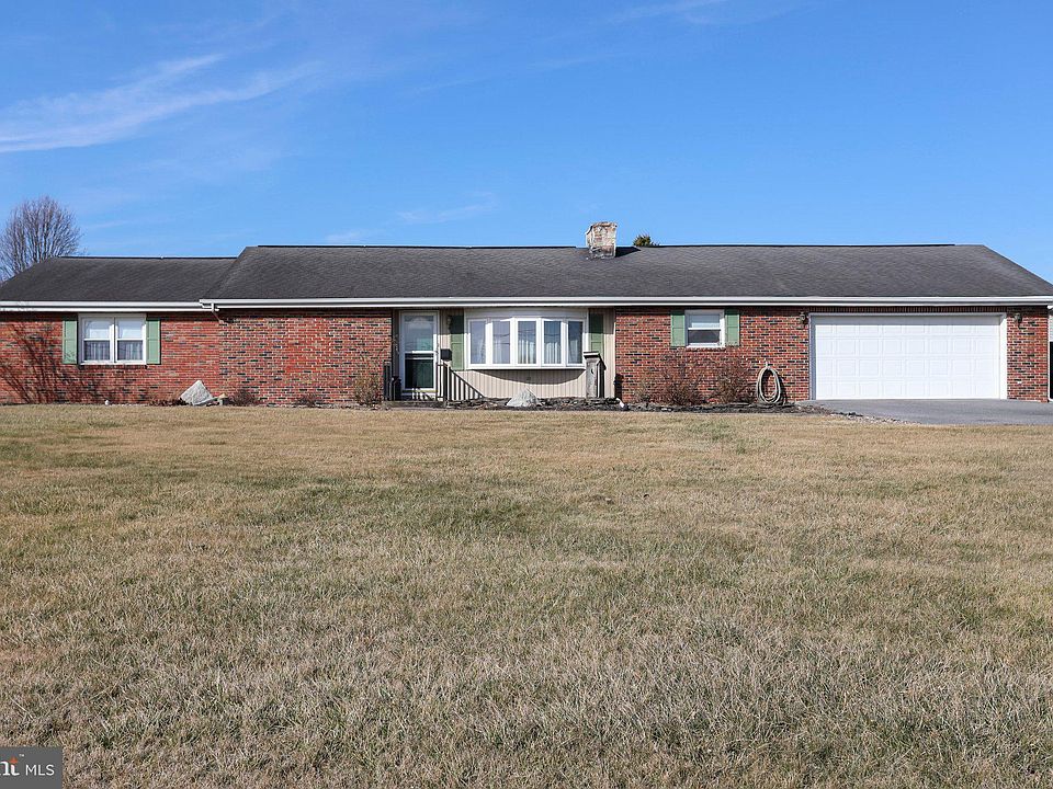 Solid all brick, 3 bedroom, ranch style home, in the Greencastle-Antrim School District! This home boasts a two car attached garage and a separate 24x22 detached garage, perfect for someone looking for a workshop or mechanic area! As you enter the home, you will notice the spacious living room with a beautiful front window and stone fireplace with pellet stove insert, perfect for a cozy evening. The living room opens to an updated kitchen. The kitchen has beautiful oak cabinets, tile backsplash ,plenty of counterspace and storage! The spacious formal dining room has hardwood floors and a walk-out to the covered rear patio. The primary bedroom has double closets, an attached half bath and a walkout to the rear yard. Two more bedrooms, a full bath and laundry with half bath, round out the main level. The partially finished, lower level has a family room, with bar and lots of potential for additional workout space or just more storage and sellers have installed a waterproofing system! Concerned about heating expense? Not only is there a pellet stove on the main level, but also a wood/coal burning furnace, located in the lower level. Lets not overlook the great outdoor entertaining space, complete with a covered rear porch, an above ground pool and a fish pond! A 15x10 storage shed is located in the rear, for all your pool toys! Don't miss out on this one! Schedule your tour today! Room sizes and sq footage are estimated.