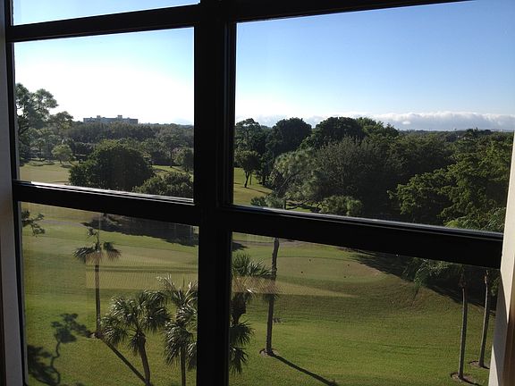 Magnificent golf course view from very desirable 6th floor 2 bedroom/2 bath condo with great neighbors. Outstanding location in Boca right off of Palmetto and Powerline. Convenient to everything in Boca including Town Center Mall, Glades Road shops, I-95, Turnpike and the sawgrass Expressway. All age building in great school district. Screened balcony with accordian shutters, master bathroom has large roman style tub. unit sold with deeded covered parking space with locked storage. Gated community with club house, exercise room, community pool and hot tub. Quarterly maintenance includes basic cable, monthly pest control, water & sewer, on site manager. Financially stable and well funded association.