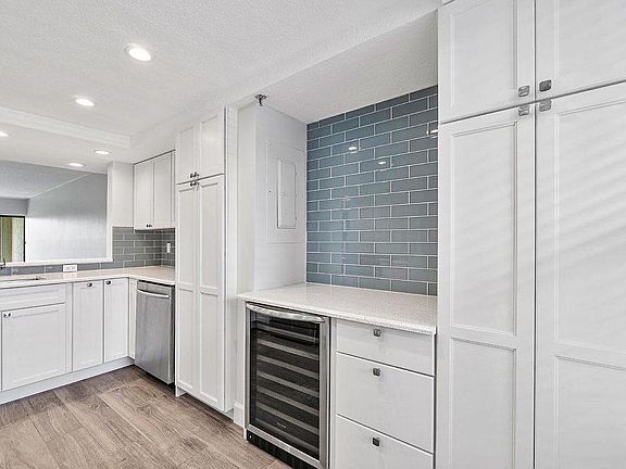 Gated Club Royale condominium. Shows like a brand new model. Gorgeous, totally renovated home with an incredible golf course & lake view. Brand new, wide open kitchen with white cabinets, quartz counter tops and tile back splash. Wine fridge in kitchen. Two new bathrooms with custom vanities, tile showers with frameless enclosures. Wood look porcelain floors throughout including the large screened balcony. Covered parking, community pool & hot tub with golf course views. Move fast on this one!
