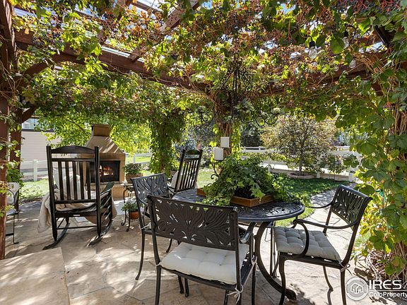 Beautifully maintained 2-story home in Firestone's St Vrain Ranch 4Bd, 3Ba. Light and bright vaulted great room with gas fireplace plus a formal living room. Kitchen with eat-in dining area features sleek black appliances, pantry, hardwood floors, and plenty of cabinet space. Large main floor primary bedroom with 5-piece ensuite. 1400Sq. Ft. unfinished basement with rough-in. Gorgeous patio features vine-covered pergola and wood burning stove. Home backs to trail leading to neighbourhood open spaces, playground, and park. Easy commute to I-25.