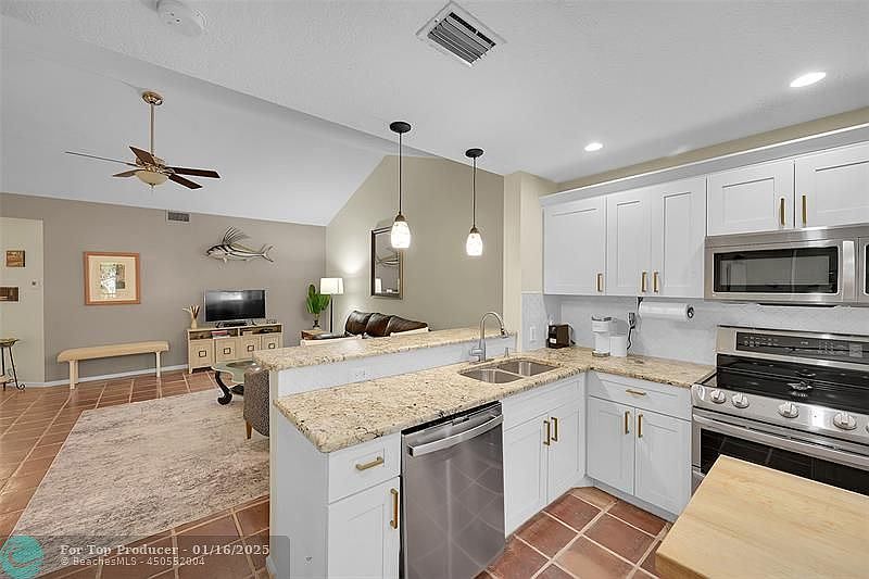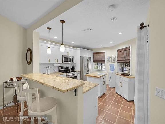 Renovated condo in the sought-after Plum section of Boca Pointe. Bright, airy floor plan with vaulted ceilings & an open-concept design with charming Mexican tiles. The recently renovated kitchen features sleek white cabinetry with soft-close drawers, granite countertops & top-of-the-line stainless steel appliances. Both bathrooms have been completely transformed with designer finishes, including an oversized walk-in shower and marble vanity in the primary suite. This is one of the few buildings with a brand new roof. Residents of this community have access to a swimming pool & a relaxing whirlpool spa, perfect for soaking up the Florida sunshine. Boca Pointe also offers various optional country club memberships, giving you the flexibility to enjoy its world-class amenities on your terms.