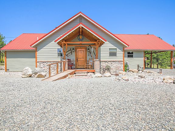 There is a shop with a 13-ft bays with an attached carport plus guest quarters. The guest quarters has a kitchen, ¾ bath, and a living room with a fireplace. Other pluses: a shooting range, and four wheeler trail!