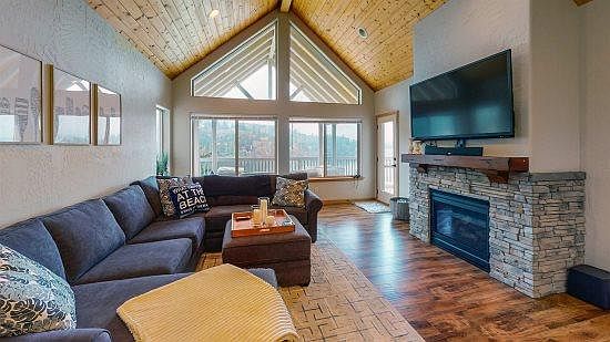 Located on peaceful Neachen Bay on Lake Coeur d'Alene, Stone Hill House is the perfect home to visit, unwind, and enjoy the view. With two levels of living space and two expansive decks, you'll find room for everyone while enjoying all the comforts of home while being a short, scenic drive into downtown Coeur d'Alene. Enter the home to find vaulted ceilings, large windows, and hardwood floors throughout the main living space. A living room with comfortable seating awaits beside floor-to-ceiling windows. Enjoy the ambiance of a gas fireplace beside the lake views or snuggle in for your favorite shows on the large Smart TV. The open kitchen keeps you right in the action while you find ample cooking space on the granite countertops. Gorgeous wooden cabinets and stainless steel appliances round out this well-stocked kitchen. Round the corner to the dining room where a large wood table seats eight, and enjoy your meals beside the adjacent windows with expansive views. Or take the party into the 180-degree view where you'll find sunny outdoor dining for eight and sectional seating under the covered deck. Back inside, a large master bedroom awaits off the dining room. This room is a complete haven with a king bed, large walk-in closet, gas fireplace, a desk with SmartTV, and private deck access. Just across the hall, the large bathroom awaits with a soaking tub, spacious shower, and dual vanity, making morning prep a breeze. On the other side of the main level, another bedroom awaits with a queen bed, closet, and private deck access. Beside it, another bathroom with a tub/shower combo is ready for evening bathtime. To complete this level, a full-sized washer and dryer set await all your washing needs. Descend to the lower level for even more space and entertainment. This open family room boasts comfortable sectional seating and a large SmartTV for late-night movies. A pool table and foosball table provide hours of entertainment while a full shelf of board games keep the fun times rolling all evening. You'll find a full bathroom with a standing shower on this level, as well as access to the lower-level deck. Beside the family room, a bunk room awaits with sleeping for four. And just around the corner, you'll find the fourth bedroom with a queen bed, gas fireplace, and private deck access. When it's time to explore, amble down the hill or take the waterfront road to the lake where your own private dock provides hours of lakeside fun. This particular area of the lake has minimal boat traffic, creating a peaceful atmosphere for the lounging adults and playful kids. From socializing and dining indoors to watching the sunset from the deck space of your choice, you're sure to make lasting memories in this quiet lake house. Whether you're staying in town for a few days or a few weeks, make Stone Hill House your home away from home! Short-term lease. Available from January 2nd until March. Fully furnished. $4,100 a month rent, $2,500 deposit, $250 flat utility charge monthly. $250 non- refundable pet fee if applicable