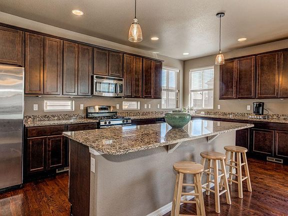 Do not miss this gorgeous home with Views of Pikes Peak!!! Meticulously maintained fully upgraded new build from 2014! This unique home offers tons of character, you will fall in love right away! Gleaming floors and warm, inviting paint colors greet you upon entry. This spacious home offers plenty of living space and is ideal for entertaining! The stunning kitchen has been finished with matching stainless-steel appliances, beautiful counter tops, and a large island proving extra seating. Upstairs you will find the king size master retreat with private bathroom, a separate sitting area, and a gorgeous dual sided fireplace to help keep warm and cozy on chilly Colorado evenings! The upper level offers 2 additional bedrooms, 2 full bathrooms, and a loft! Fully fenced backyard with lush grass, a great space for summer BBQ's with friends and family! Unfinished basement is perfect for expansion and provides tons of storage. This home will not disappoint! Book your showing quickly!!