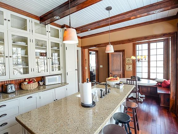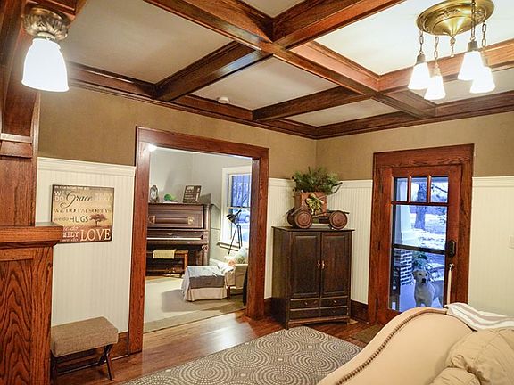 Charm & character abound in this mission style home where craftsmanship is evident throughout. Impressive front porch, stately pillars, beautiful woodwork, built-ins, hardwood floors & boxed-beamed ceilings adorn this 4+ BR, 3 bath home. Nearly 3 acres of rolling hills & majestic oak trees surround home with deeded access to lake Erie. New walkout basement with 9? ceilings, in floor heat, high performance fireplace, silestone countertops, new furnace and roof are some of the latest upgrade.