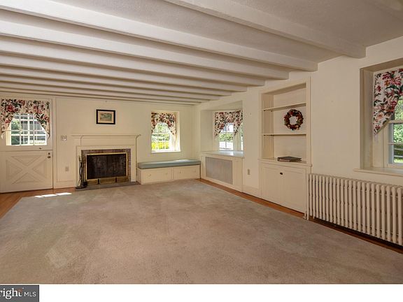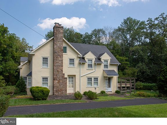 Nestled on a simply gorgeous 1+ acre lot in the lovely village of Solebury sits this 5 bedroom stucco over stone farmhouse circa 1890 with a 1940 wood frame addition on the market for the first time in over 90 years! Currently it has 2 kitchens to accommodate extended family. Hardwood flooring, deep window sills, exposed beam ceiling, built-ins & a covered porch are just some of the features that adorn this home. The two full bathrooms on the second floor were renovated in 2013. Oil burner was replaced in 2015. The walk up attic is floored providing ample storage while the walk out basement has several rooms that could be used for workshop or crafts. There is a 2 story barn/garage that can hold 3 average sized cars plus an MG or motorcycles, workshop & storage on the first floor. An outside stairway leads to the second floor containing of 2 rooms which would make a terrific art studio. A stream borders the property spilling into a pond with a water wheel. Beautiful gardens, stone walls, pathways, a flowering vine covered pergola & patio blend into a peaceful paradise that Buddha would envy! *A new septic drip system for a 4 bedroom home is currently being installed