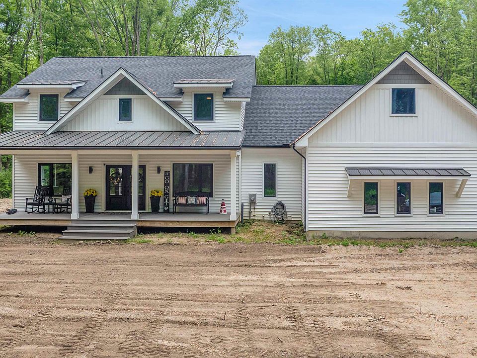 Stunning Newly *Custom Built Modern Farm House designed on 11+ peaceful wooded country acres with *City Water/*City Sewer & on a *Paved Road! This one of a kind home features a 2,675+sqft floor plan equipped with 3 Bedrooms,Den or 4th bedroom, 2 full baths & 1 half bath including a True Primary Bedroom Suite on the main floor with a beautiful full tiled bath & Incredible custom walk in closets. Upon entry you will notice the attention to detail and large open functionality this home possesses. Great room/dinning/kitchen areas flow openly together all offering wonderful views of nature.This Gorgeous Custom Kitchen features granite tops,tiled backsplash,built in appliances, Coffee station area & large walk in pantry! Outside you will find a large covered Porch great for entertaining family&friends while watching the wild life right in your backyard! Plus enjoy the loft media room with Stunning Balcony! An additional HUGE unfinished bonus area,owners call their basement & the attached 2.5+ car garage offers lots & lots of storage space!