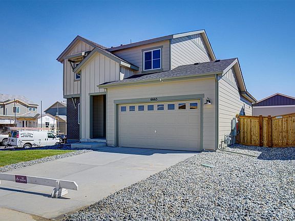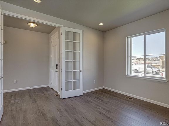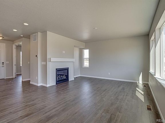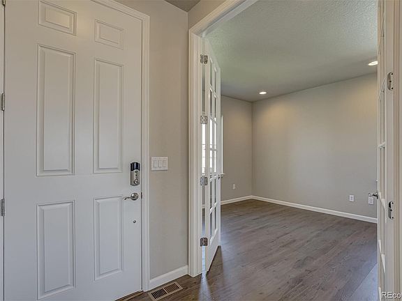 Brand New 3 bedroom in Castle Pines! Great room with cozy fireplace open to kitchen, main floor study with French doors! Corner homesite with one large back yard. Professional designer selected Luxury Vinyl Plank on main level Quartz Kitchen counters 42" kitchen cabinets, large island, stainless steel appliances, and 8-foot doors on the main level. The Master bedroom is a very spacious, and en-suite luxury bath and huge walk-in closet! Fully landscaped front yard with irrigation. In Douglas County School District. The laundry room is upstairs where the clothes are.
