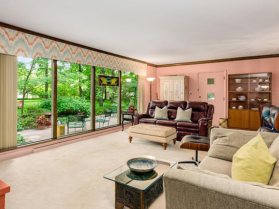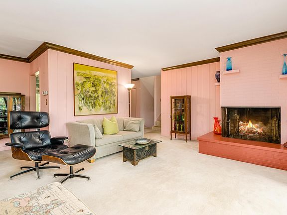 Rare opportunity! This 4 BR, 3 full bath home w/ mid-century modern vibe is located on 1.1 acre, walkable to elementary school! Living room boasts Frank Lloyd Wright inspired fireplace opening to huge windows overlooking 1.1 acre private lot! Screened porch & patio give more gathering space! Family room offers 2nd fireplace & cool 1950's kitchenette/bar, complete w/SS beverage fridge! Den/study has built-in shelving for those who work from home! Primary BR opens to dressing room w/ loads of closet storage & private en suite bath! Kitchen offers double ovens & Kitchen Aid cooktop & oversized 2 car garage is a bonus! Yard is incredible w/many specialized specimen plantings! Home will need paint & flooring throughout; however, this is a gem of a home on a fabulous lot!