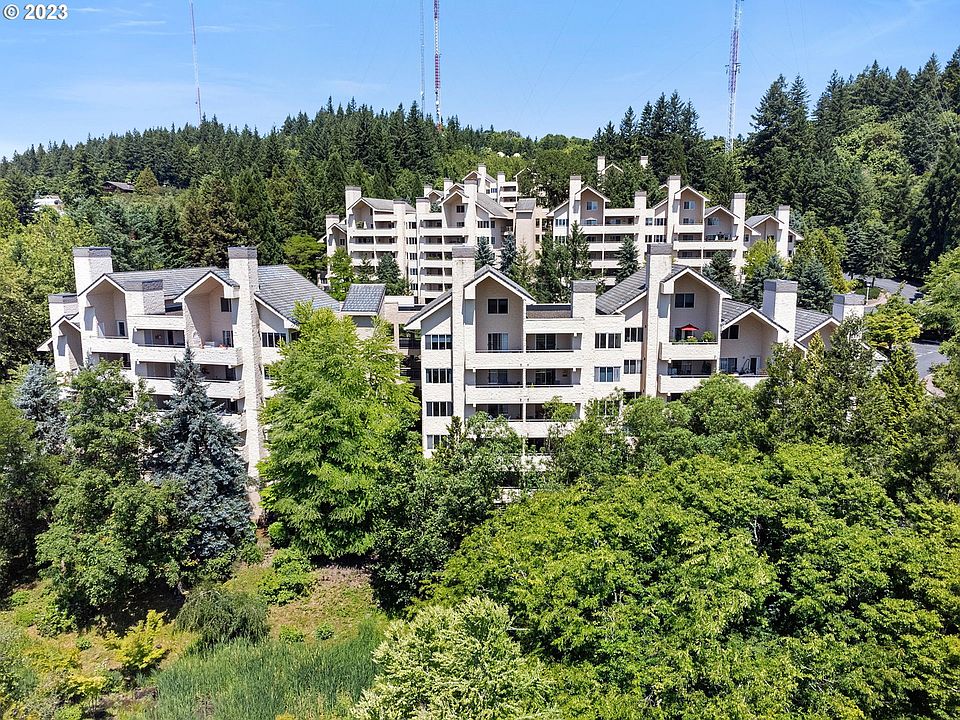 Washington County taxes with a Portland address! Welcome to The Quintet - a highly sought after 17 acre community to live within! Enjoy secluded living with close access to city life. Beautiful views and gorgeous natural surroundings of maintained grounds/landscaping, designed by award winning Kurisu. Take advantage of property amenities- an indoor lap pool, tennis / pickleball courts, work out room, clubhouse, community meeting rooms, BBQ and more. The unit is well maintained and move-in ready. It has a cozy gas fireplace and full size washer/dryer in-unit. The large covered patio area extends the seasonal indoor/outdoor living options and brings natural light to the home. The building has an elevator for ease of access to unit and parking. Close to Catlin Gabel School and St. Vincent Medical Center. 2 parking spaces assigned to the unit!