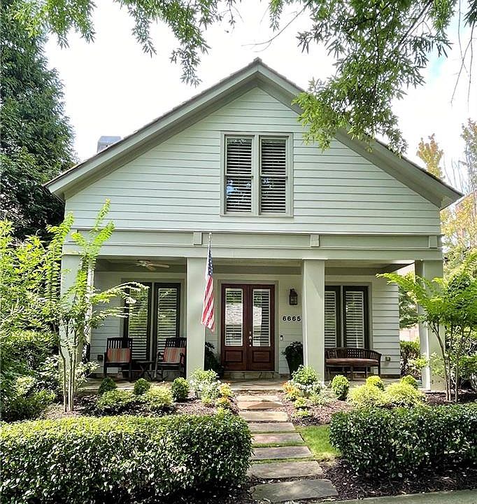 Beautiful Master on Main Craftsman Style home in charming Vickery community. The home boasts one-level living the moment you open to a family room with a white brick fireplace, joined dining room, and hardwoods with views to your large covered front porch. Stroll to your master on the main suite, luxury bath with double vanity, a separate soaking tub, shower, and walk-in closet with custom shelving. Warm and inviting gourmet kitchen overlooking keeping room with pocket door access to your laundry room and lots of natural light. The owner uses much of the kitchen as a keeping room but could easily be arranged for a more traditional eat-in kitchen. Two oversized bedrooms on the upper level with a shared bath and double vanities. Stone courtyard with water feature separates the main home and extended 2 car garage and storage shed large enough to fit your golf cart and gardening tools. A finished studio carriage home with exterior access above the garage is complete with a full bath, kitchenette, and additional storage! A new roof was recently installed. This property is truly immaculate! Savor the Vickery lifestyle from your front porch on a quiet street, a gentle walk or easy golf cart ride to swim/tennis, parks, shopping, restaurants, fitness facilities, and highly sought schools. Minutes to GA 400, Halcyon, and the Collection for additional shopping and restaurants.