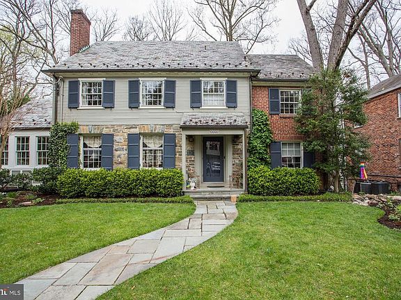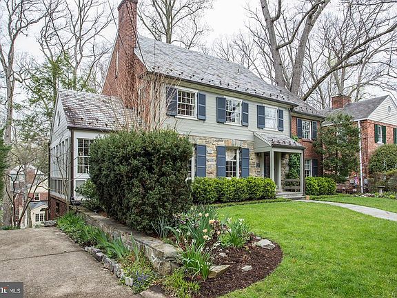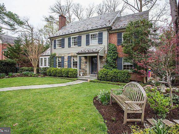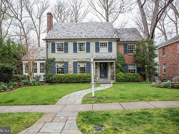 SEE THE VIDEO TOUR! Outstanding curb appeal in this brick, stone and wood Colonial nestled in the heart of Barnaby Woods! Step inside the entry foyer and your eye is drawn straight back to large windows flooding the house with light. The main level features the living room with wood burning fireplace, the dining room with doors to the rear deck, a main level bedroom or den with closet and full bath plus a side sun room currently used as an office. The gem of the main level is the newly remodeled white kitchen with white fantasy quartzite counters, counter space island, professional stainless steel appliances, white Shaw's farm sink, skylights, abundant custom cabinets-all adjacent to the family room with table space and gas fireplace. Upstairs are 3 bedrooms and 2 renovated full baths to include a master bath en suite. Fixed stairs from the hall lead to the 4th bedroom; plumbing pipes were run to this level (in the closet) if you wanted to add another full bath. The walk out lower level has a 5th bedroom, sitting area, laundry, powder room and very large storage area that could be converted to additional living space. Don't miss the rear patio oasis! Driveway and street parking. VIRTUAL TOUR COMING BY FRIDAY.