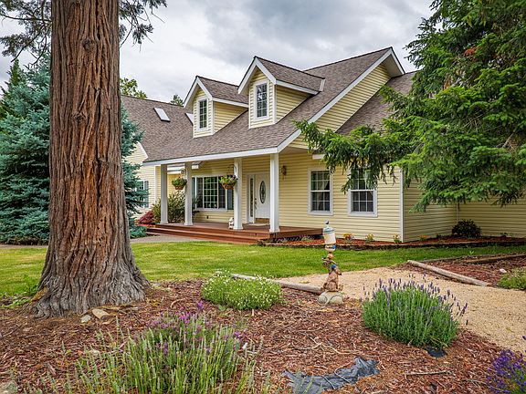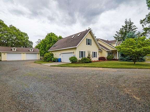 Don't miss the opportunity to see this beautiful 3,166 sq-ft home on 4 acres of gorgeous level, irrigated horse property! Home centers around a large great room with fireplace and cathedral ceilings; hickory hardwood floors throughout. Beautiful kitchen has double ovens, granite countertops, and a large pantry with wine fridge. Three over-sized bedrooms; two ensuites, primary bedroom with french doors, a fireplace, large walk-in closet and updated bathroom. Two bonus rooms upstairs; family room and an art/craft studio. The back door opens up to a beautiful 1700 sq-ft patio with surround sound, hot tub and a full outdoor kitchen! 40x34 outstanding shop with 2 oversized doors and finished floor. There are 2 barns; 24x36 with heated tack room (could be an ADU or guest house) and the 2nd is 36x36. Property/pastures are fully fenced & cross-fenced with vinyl fencing with additional 24x24 shelter; all can be irrigated with included equipment. This is a must see!!