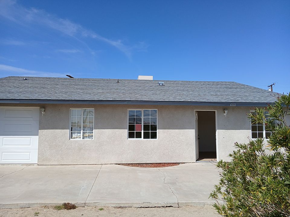 MOVE IN SPECIAL, CALL FOR DETAILS, Garage with a work bench, Huge Backyard, New paint, New A/C and Swamp cooler, Washer/Dryer Hook ups in the garage A quiet neighborhood, Amazing serenity, Great for stargazing and not too far from Joshua Tree park, 1 year lease, Please fill out an application before touring 1 year, owner pays for trash only
