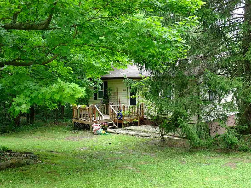 This 9.93 acre property offers a beautiful wooded view, spring-fed pond, and four outbuildings (two sheds and two pole barns). The 1536 sq. ft site-built home offers a newly remodeled bathroom on the main level, new Maytag dishwasher, LG washer and dryer, french style refrigerator, CSC home security system, and a natural creek stone wall in the basement. The land has a gardening shed, pole barns, three creeks, peach and pear trees and mature plants. ***NEW ROOF AS OF DECEMBER 2017!***