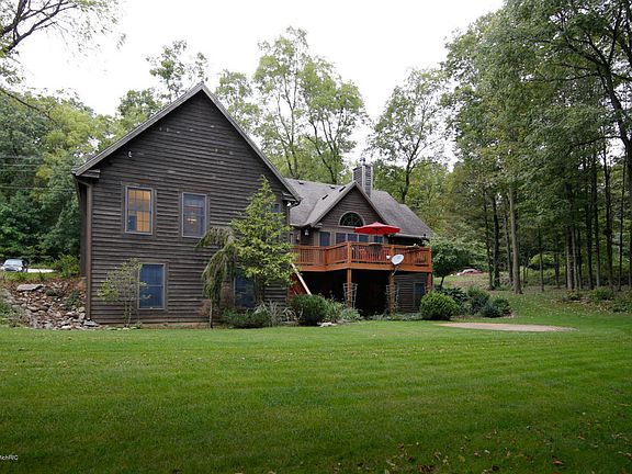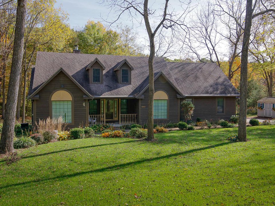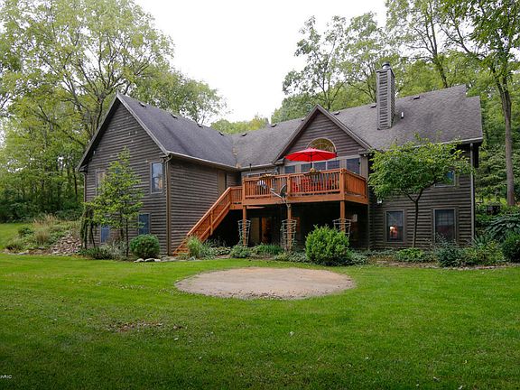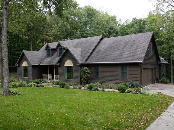 The large deck on the back of this lovely home, is perfect to enjoy the peaceful wooded acreage and wildlife. Walk-out lower level adds ease of access to the patio and 3 acres. Home has cedar siding, cozy front porch and open foyer into the large living room. Loaded with extras - Anderson windows, R.O system, modern paint colors, walk-out lower level, flower gardens, terraced yard. Lower level includes family room, workshop area, plumbed for a bath. Secluded yet just a few miles to US 12, Shavehead Lake, and the Indiana State Line.