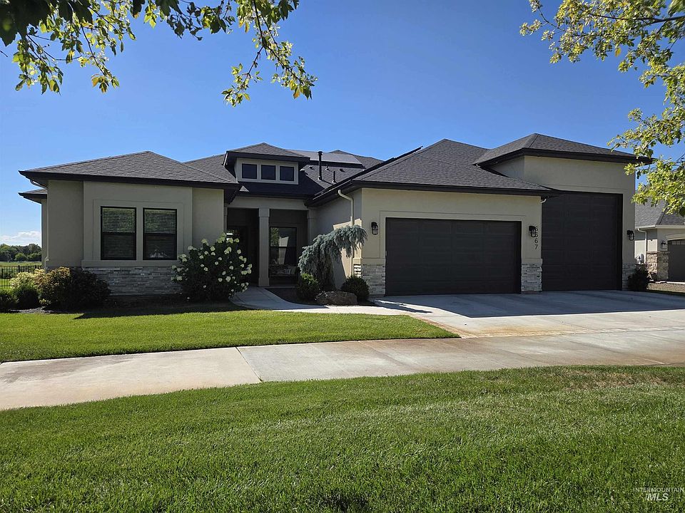 Welcome home. This property provides a quiet retreat within short walking distance to the Boise river. It has pastoral views and backs to the Boise river overflow. Solar panels have been installed making it very efficient. There is no electric bill. Garage has 3 EV charging outlets. Inside the garage you will find a 9' x 12' golf simulator with over 300,000 golf courses (including Pebble Beach, Augusta, TPC Sawgrass, and many others) Inside you will find high ceilings with oversized 8' doors and custom trim work throughout. Kitchen has SubZero and Wolf appliances. Bathrooms have tile flooring with tile showers and quartz countertops. All bedrooms are oversized providing plenty of space. Separate living and family/theater room. Chill at the community pool/beach area or go fishing and paddleboarding in the pond.