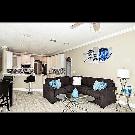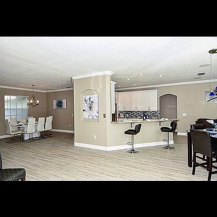 - Interior Features: Ceiling Fans(s), High Ceiling(s), Split Bedroom, Crown Molding, Walk-In Closet(s), Window Treatments, Open Floorplan, Kitchen/Family Room Combo, Built in Features, Stone Counters, Thermostat