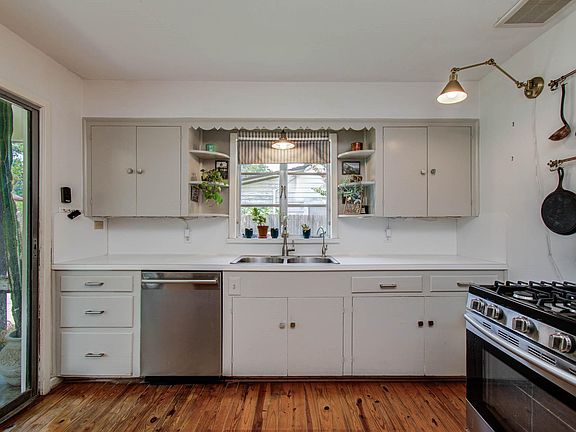 Charming and updated, this Ranch-style home with Mid-Century flair offers 2 bedrooms and 2 baths on a spacious 9,652 sq. ft. lot. Nestled on a tree-lined street just steps from a neighborhood park and Brays Bayou hike-and-bike trail, it blends character with modern conveniences. The airy living room showcases a large picture window and opens to the dining room with original glass-front built-ins. The kitchen features stainless appliances, a sliding glass door to the screened-in porch, and includes the refrigerator, washer, and dryer. The spacious primary suite has a private bath, while gleaming pine floors run throughout. Notable updates include Renewal by Andersen windows. The oversized backyard with a detached garage and screened porch is perfect for entertaining. Conveniently located just 5 miles from Downtown and the Medical Center!