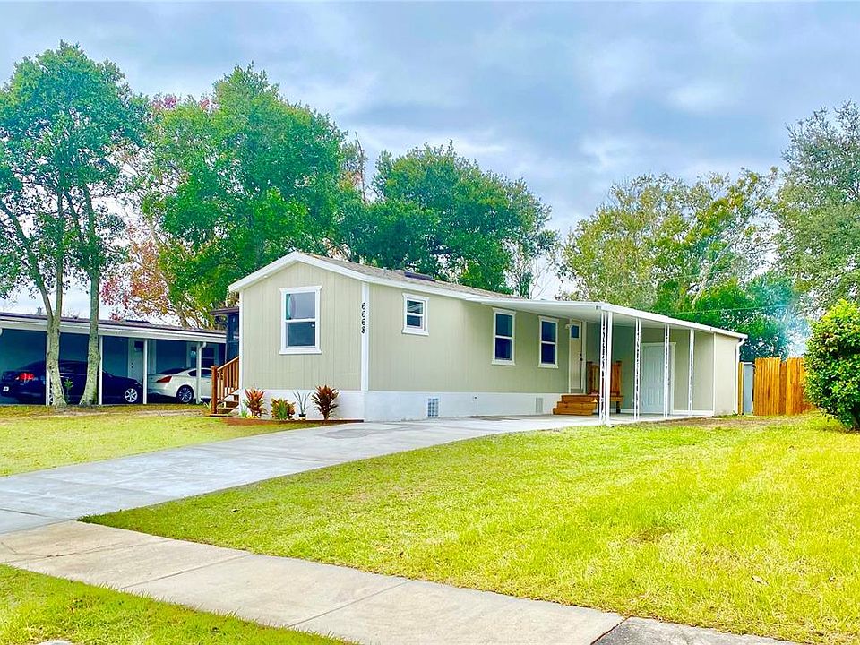 RENOVATED Beautiful Manufactured Home. READY TO MOVE-IN! Spacious 2 BEDROOMS *2 BATHROOM ************2025 NEW ROOF ***2025 NEW PLUMBING***COVERED SPACIOUS PORCH * COVERED CARPORT. Cozy home with *BRAND NEW FLOORING *NEW KITCHEN CABINETS *BRAND NEW STAINLESS STEEL APPLIANCES * *STRONG AIR CONDITIONER *RENOVATED BATHROOMS *NEW CEILING LIGHTS *SPACIOUS LAUNDRY ROOM *BACK STORAGE SHED *BIG YARD *CARPORT *Refinished DRIVEWAY *NEW ELEGANT WOOD STAIRS. Call for your private showing to this beautiful home before is too late.