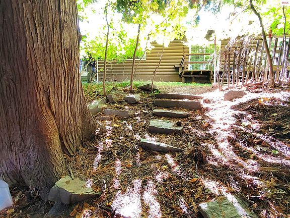 Charming log home, conveniently located on the south hill near schools and shopping. Private setting on 1.44 acres. Three bedroom, 2 bath, over 2000 square feet, with attached garage. Stone fireplace, plus a wood buning stove. Large yard has beautiful mature trees of every kind. Great established neighborhood. Call for an appt today!!