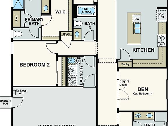 Upon entering the Jade, views lead through the kitchen and great room, onto the covered patio. The kitchen nook connects both the great room and kitchen, allowing the rooms to flow together, as well as providing easy access to the covered patio. The kitchen features a generous island and wrap-around counters, providing essential storage space for all of your kitchen gadgets. The den offers a great space for an office or a playroom for the kids. A secondary bedroom near the entry with close proximity to a generous hall bath is perfect for older children and guests. An additional secondary bedroom, full bathroom, and laundry room are tucked near the main hallway, with easy access to the garage. Entrance to the Primary Suite is buffered by a private entry from the great room, creating a secluded retreat. The Primary Suite bath provides additional storage via the linen and walk-in closet.This home is currently under construction, and features the following options and upgrades: Upgraded Tile Roof Upgraded Cabinets in Stone Gray Upgraded Manitoba White Quartz Countertops Throughout Recycle Bin Pull-Out Drawer at Kitchen Recessed LED Can Lights at Great Room French Doors at Den 2nd Sink at Bath 2 And More!Located on lot 152 at Olivewood by Century Communities