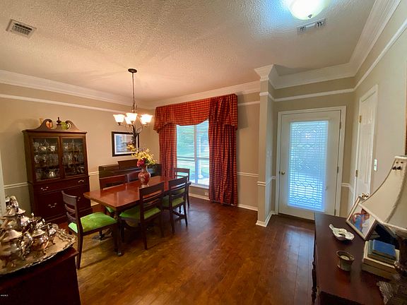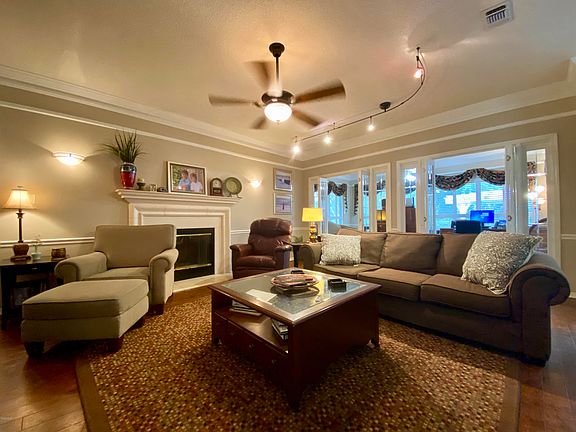 This beautiful home is located on a large lot close to the golf course. Spacious floor plan with high ceilings and molding throughout. Wood flooring in all living areas. Foyer. Formal dining room. Open kitchen with eating area, solid surface countertops, stainless appliances. New cooktop. Refrigerator included. Large living room with fireplace. Large sunroom overlooks the large backyard. Private main bedroom suite with all the extras. Half bath. Lots of closet space throughout the house. Huge fenced in yard with extensive patio and landscaping. Side load garage. Much more!