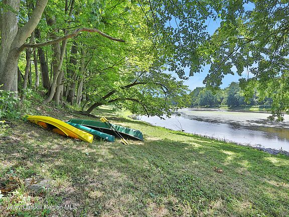 Outdoors, adventure awaits with 124 feet of private frontage on the serene Wallkill River. Included are three kayaks, ready to launch for endless river explorations. After a day of paddling, soak your cares away in the hot tub while taking in the tranquil surroundings.