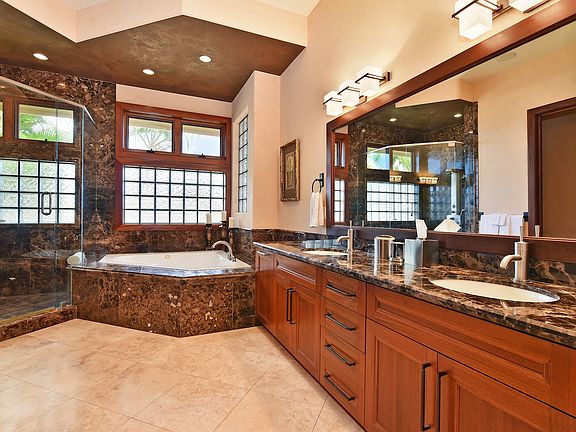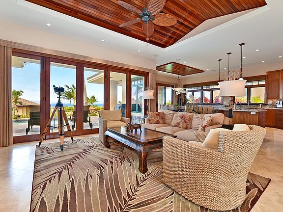 This tropical custom single level home is located in Kaanapali's newest exclusive neighborhood, Lanikeha. The wide open floor plan with large bi-folding doors brings the inside out to take advantage of Maui island living, overlooking the ocean and island views. The high end finishes include the generous use of African Mahogany for the cabinetry and doors, Venetian plaster walls, Travertine flooring, Granite countertops throughout and Viking stainless steel appliances adds to the luxury of this home. The Clubhouse at Lanikeha provides a beautiful setting for neighbors and friends to meet and enjoy the infinity edge swimming pool, spa, picnic and BBQ areas, games and workout rooms.