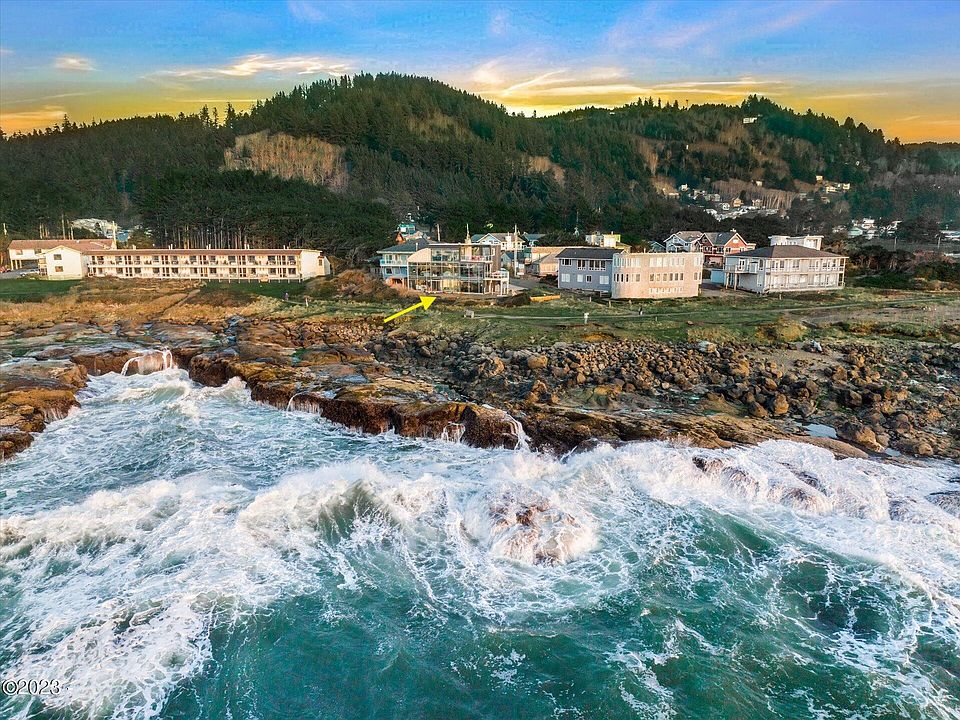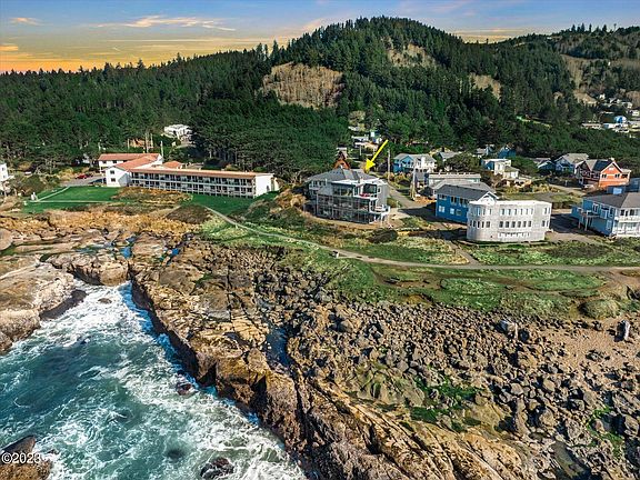 This Spectacular Oceanfront Home, located along the renowned 804 Trail, is a modern architectural marvel, blending industrial elements with contemporary design. The home spans across three levels and boasts a striking wall of windows bringing the outside in, offering breathtaking ocean views from nearly every room. The home features two open concept bedrooms, three and a half bathrooms, two fully-equipped kitchens, three fireplaces, two decks and an elevator for easy access to all levels. The third level can be used as an office, den or sleeping area, with a full bath and wet bar. This home is truly an oasis, with frequent sightings of whales and sea lions. Enjoy a front-row seat to the breathtaking Oregon coast sunsets and crashing waves along the rocky basalt coastline. Whether you're looking for a permanent residence or a vacation home, this property offers the ultimate oceanfront living experience.