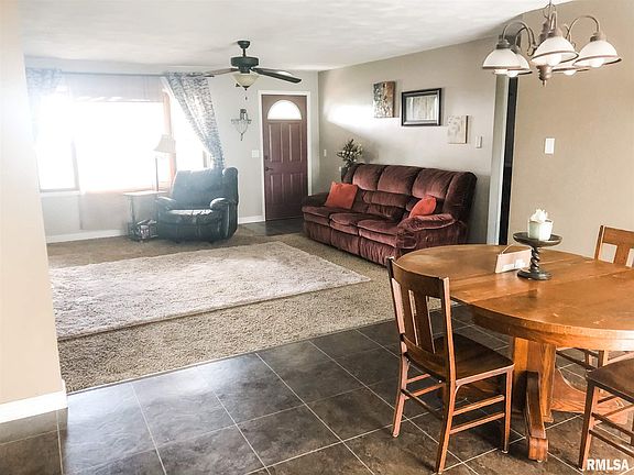 This adorable country home in Sandoval School District has many updates and so much to love! Large, open living area flows from front/family room to large dining area and bright kitchen looking out to the spacious, fenced back yard. Nice powder room for guests and a full bathroom with tub/shower combo with custom tile surround. The finished basement is wonderful bonus space, with a wet bar, tv area and rec room. Laundry is also in the basement with large closets for storage. Single car attached garage (18'x22') and double car detached garage (24'x30'). New water heater in 2020, and new sump pump in 2019, new roof and fencing in 2011.