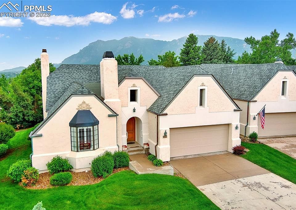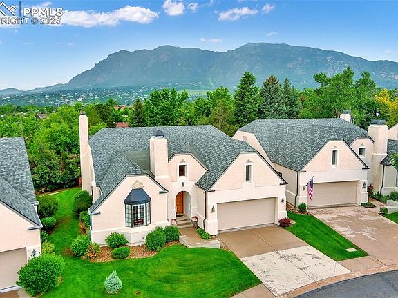 All main level living's finest. Tucked away in a popular, elegant, quiet and private patio home community with green area and park nearby. This sunny bright home offers generous-sized rooms. The dramatic entry opens into the spectacular great room with mountain views, stunning hardwood floors, vaulted ceilings and fireplace. Great room also incorporates a large dining area perfect for entertaining. Walk out to a sunlit patio and fenced back yard. The kitchen has center island, ample light wood cabinetry, tile floors and a cozy eating nook with fireplace and bay window. Gorgeous hardwood floors flow throughout great room, kitchen and master. The large master also walks out to the patio for morning coffee and has a large 5 piece bath with double vanity, large soaking tub and walk-in closet. The two other bedrooms have new carpet and share a full bath. Enjoy wonderful Plantation Shutters in all of the rooms.Oversized two car garage walks into home. Close to shopping, World arena, gym, restaurants, Broadmoor Hotel, Fort Carson and Quail Lake park and trails. Freshly painted with new bedroom carpet. Single level living! Rarely on the market, these homes are a 10!