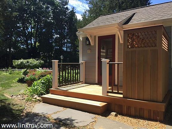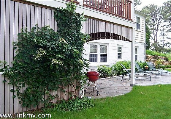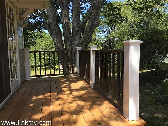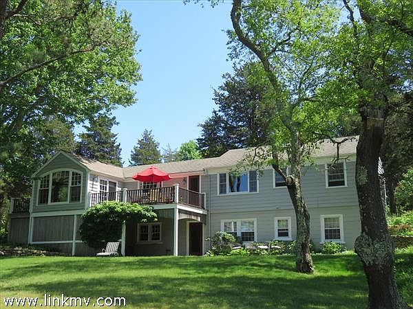 This sunny home sits on 2.43 acres in the historic district of West Tisbury. The property is conveniently located off Old County Road and is just a short walk to the Library and Alley's Store. Extensively renovated by Hutker & Associates in 1996 and 2010, the house features open space, with a vaulted ceiling and custom designed Marvin picture window in the sunroom/family room area. Sliding doors lead to the deck where glorious sunsets and evening cocktails beckon while overlooking the flowering shrubs and small pond feeding into the Mill Pond. The first floor offers one-level living with a well-designed kitchen, two full bathrooms, master bedroom and a dining/living room area with a gas fireplace. Both dining/living area and master bedroom have original pine floors. The lower level offers a second bedroom and full bath along with an additional sleeping area. The home could easily be converted back to its original 3 bedrooms. The circular driveway is surrounded with spring flowering bulbs, forsythia, lilacs and rhododendron. This wonderful property is in move-in condition and invites you to immediately enjoy Summer on the Vineyard.
