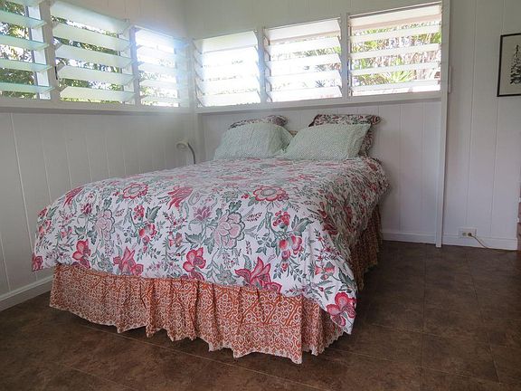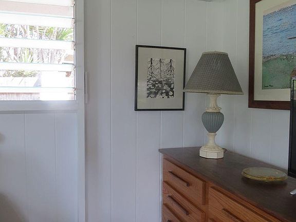 Kaimalino is a very quiet, peaceful neighborhood, with easy access to the beach, ocean, H-3, MCBH and Aikahi Shopping complex. The community is tucked away in the northern most section of Kailua. There are no sidewalks but rather easy walking along the large, well manicured lawns. The rental is a master bedroom suite is in a home that was built for military officers in 1956. Its a very large bedroom that is comfortably furnished and has a full bath (with tub). There is an outdoor (hot/cold) shower for rinsing off after visiting the beach. The room's private entrance opens up to a large yard looking out at the many fruit and flower trees on the property. There is a friendly resident dog who shares the yard. Entrance to the room is fully private, as is the access to the pathway from where the tenant would park their vehicle. The room is strictly non-smoking and for one person only . All utilities included. This unit is best suited for a single individual.