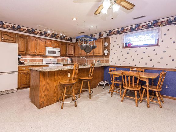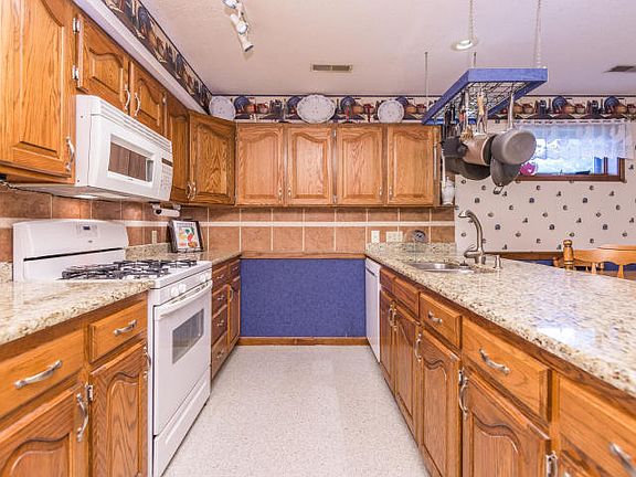 Want a farmhouse surrounded by acreage? This is it! 3 Beds + office, 2 Baths, +Garages! Main Level Living! Home sits on 1.61 Acres & surrounded by acres and acres of land as far as you can see! The Spacious Open Kitchen/Living/Dining Room. Kitchen has granite, gas stove & lg. bfast bar! Master Suite w/ walk-in closet, full att. Bath & Walk-in shower! Guest Beds w/Hall Bath + Office w/huge desk/cabinet space. Laundry Room w/ Counter/soaking sink, coat closet/storage closet & walks out to covered patio making it the perfect mudroom! Detached Garage 1 is 35x30 w/ concrete floor plus additional 30x35 garage w/ dirt floor. Additional garage includes one garage bay plus lean to. My favorite extras: Peach, Apple & Pecan Trees, Blackberry bushes & asparagus. Plus chicken house/run! A MUST SEE!