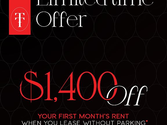 SAVE $1400 off your first months rent when you don't need a parking spot.