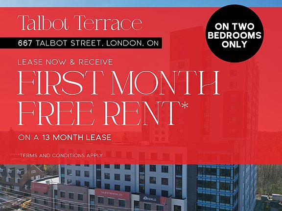Situated at 667 Talbot Street, this contemporary development puts you within steps of London's most vibrant destinations. As one of the city's newest and most refined living options, Talbot Terrace stands out among London high end apartments. Just minutes from the Covent Garden Market, Richmond Row, theatres, parks, and transit everything you need is right at your doorstep.