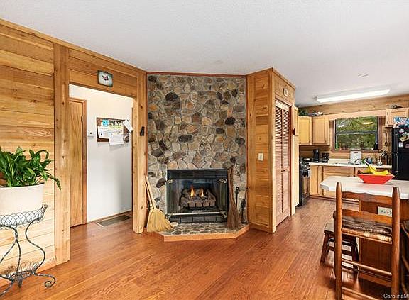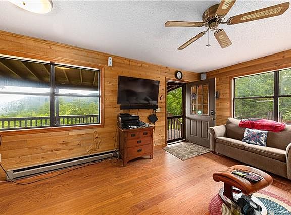Year-round sunset views! This quaint cabin tucked away in Cowee is the perfect mountain get-away or year-round home. Enjoy the view from the living room or the front deck! The small kitchen and island dining area pull the living area together for an open concept. About ten minutes from town, this home is accessible yet private. Added storage space beside the home for a shed and fenced-in dog house.