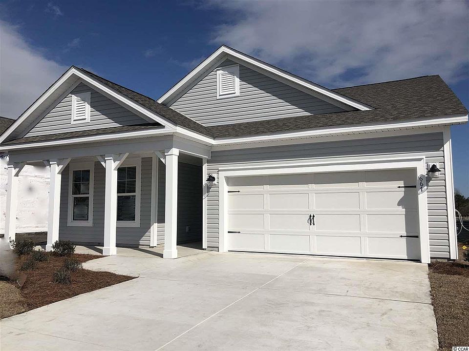 This home is ready to Close in 30 days, in Sunset Landing. This spec home is the Dogwood floorplan featuring 1-story living with 2 bedrooms, study. The study is spacious for sleeper sofa / murphy-bed, separate dining room or anything else you want to use this spacious study featuring beautiful french doors. 2 bathrooms, a 2-car garage space, and a front and rear covered porch. Window blinds, stainless gas range, dishwasher, microwave are all included with purchase. All homes in Sunset Landing are 100% Energy Star Certified, tested and rated by an independent 3rd party resulting in more comfort and lower cost of utility bills! Sunset Landing is a natural gas community showcasing a brand new series of single family homes. A small, intimate neighborhood consisting of only 193 homes, residents will have access pool, sidewalks, and weekly trash collection. Sunset Landing is located less than 1 mile to Highway 31, providing quick and convenient access to navigate the entire coastline. Located within the fishing and boating town of Little River, South Carolina, this area is outside of the hustle and bustle of Myrtle Beach! A laid back atmosphere with waterfront dining, boutique-style shopping, numerous marinas and championship golf courses are all within minutes from Sunset Landing! Come explore today! Pictures are from a previous Inventory Home.