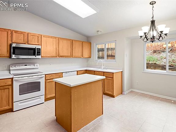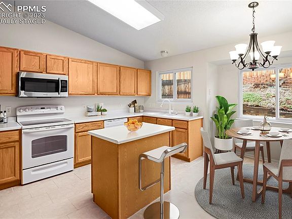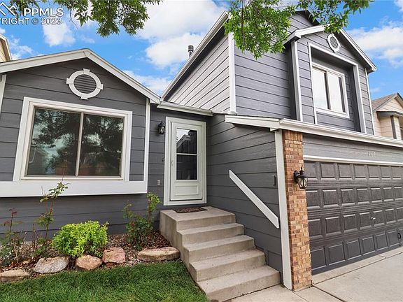 This gorgeous tri-level home has 4 beds & 3 bathrooms with a finished basement. As you enter the home, you are greeted with elegant natural red oak hardwood floors and high vaulted ceilings. You will notice the design of the open-concept kitchen, dining room, and living room. The kitchen features tiled floors, a dining area with a large window, and a center island with plenty of cabinet space. The unforgettable elegantly hand-carved wooden rail/shelf gracefully overlooks the lower-level family room. Upstairs you'll find a nice-sized master suite complete with an attached bath and walk-in closet. There are also two additional bedrooms upstairs, plenty of closet space, and another full bathroom, linen closet, and attic. The lower-level family room features natural red oak hardwood floors and a beautiful see-through gas fireplace surrounded by tile, accent wall, and built-in ledge, giving it a perfect setting for relaxation on those cold winter days. The handy back door invites you to walk out to the lovely fenced-in private backyard. The lower-family room also allows access to the basement as well as the attached 2-car garage. The basement level is completely finished and offers additional family room, office/bedroom space, including a large laundry room and a full bathroom. The large egress window provides extra security, natural lighting, and excellent ventilation. Additional features include a large crawl space for extra storage, central air/heat, a security system, a newer roof, a newly landscaped front yard, and auto sprinkler systems in front and rear yards. All plugs, doors, and windows are insulated to prevent energy leakage and upgraded triple pane energy-efficient windows. Conveniently located minutes from military bases, schools, restaurants, shopping centers, and walking distance to Sagebrush Park and Sand Creek International School. This is a must-see and won't last long. Schedule you're showing today!