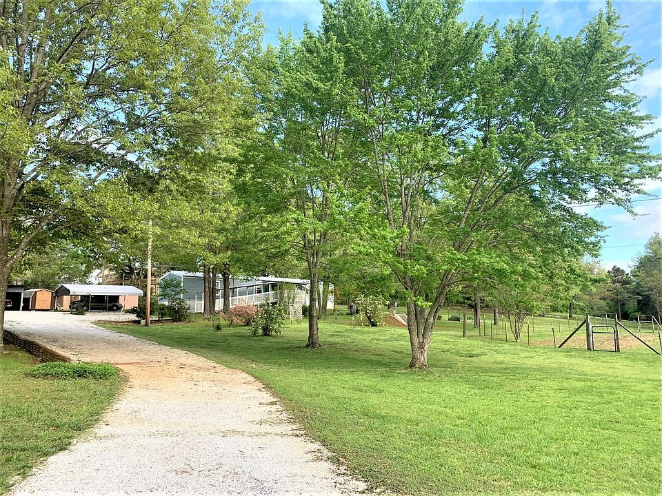 Lovely setting for this neat as a pin mobile home on 2.04 m/l acres. 3 bedrooms, 2 baths, covered front porch, carport, outbuilding, pole shed, and storm shelter area just a few of the amenities! There are raised beds, a large fenced garden spot, and beautiful, established shrubs and plants in the the large yard. Covered handicapped ramp, and large utility room. Room sizes are approximate, Sq Ftg per assessors office.