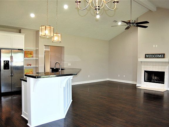 Nestled in a wonderful neighborhood this charming craftsmen style home is waiting to WELCOME you home. It begins with a pretty front porch accented with stone. Pretty front door and entry way leads you into this wonderful bright and cheery open plan. Meal prep will be a breeze in the gorgeous gourmet kitchen with abundance of granite counter tops, fabulous cabinet space, gas stove, and a lengthy breakfast bar for serving or dining! Breakfast area easily accommodates a large table for dining with family & friends. Living area is super roomy with a soaring ceiling & has a wonderful wood burning fire place. Primary Suite is situated at the back of the house & HUGE walk-in closet! Split bedroom plan is perfect! Laundry room is spacious too! Covered back patio provides room to grill and relax! All that is left to say is WELCOME HOME!