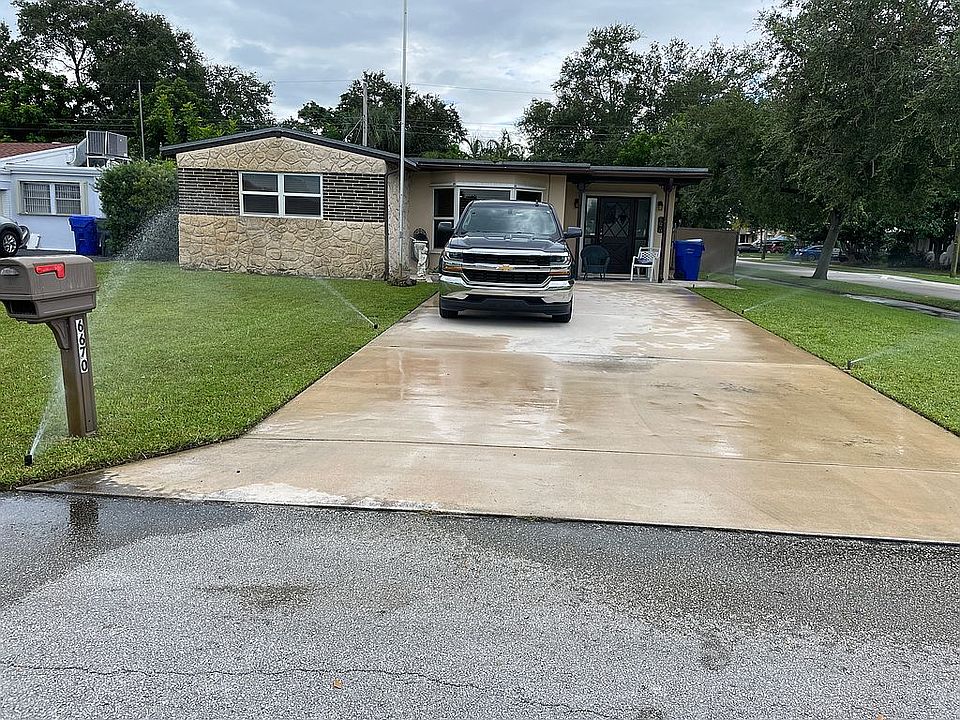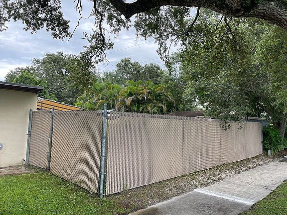 Two car concrete driveway Six foot chain link fence on three sides and six foot shadowbox wood fence on one side. Impact windows, 6 openings. Acccordian shutters 15 openings. Storm windows