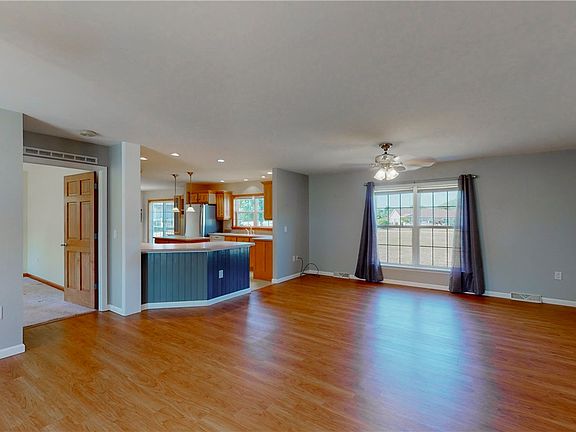 Front porch welcomes you into this Beautiful Open Concept Home with lots of light. One owner. Built in 2006 with 1568 sf and attached 2+ garage with shelving. Open concept to living room, dining room, and kitchen. Breakfast nook, laundry room, island and pantry. All appliances stay and are working - being sold as is. This is a 55+ community with a lot rent of $444 month. Included in the lot rent is lgarbage pick up, and use of the grand Community Center. T&C 2022 taxes were $401 and school taxes were $507, but with the star program it makes the school taxes -0-... Bath Municipality gas, water, sewer. NYSEG electric. It is in a beautiful mobile home community (one of a kind) with High End Ritz Craft homes and 3 ft crawl space under.