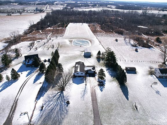 Welcome to this exquisite country home, nestled on nearly 9 acres of partially wooded land. Boasting over 3,000 sq ft of meticulously maintained living space, this property has been cherished by its current owners. The main level features 3 generously sized bedrooms w/ gleaming hardwood floors, a full bathroom, a spacious yet cozy living room, an inviting eat-in kitchen, and a breathtaking sunroom. The sunroom is a true highlight w/ Larchwood cathedral ceilings, floor-to-ceiling windows, providing an unmissable view of the rear grounds. Step outside the sunroom onto maintenance-free Azek decking, leading to a stamped concrete patio. Perfect for outdoor enjoyment. The lower level is an entertainer's dream, equipped w/ a wood-fire stove set against a charming stone hearth, a full bar, and an expansive 4th bedroom. Beyond the home, the property features a Pole Barn w/ full bath and covered porch. Enjoy the Pond complete w/ dock, rowboat, and fountain. A drive-in workshop is attached to the finished basement. RV hookup in the barn! Generator hookup in the house! Experience pride in ownership throughout this home! Delayed Showings 1/18 @ 9a - Negotiations 1/23, @ 12p. OPEN HOUSE - 1/21!