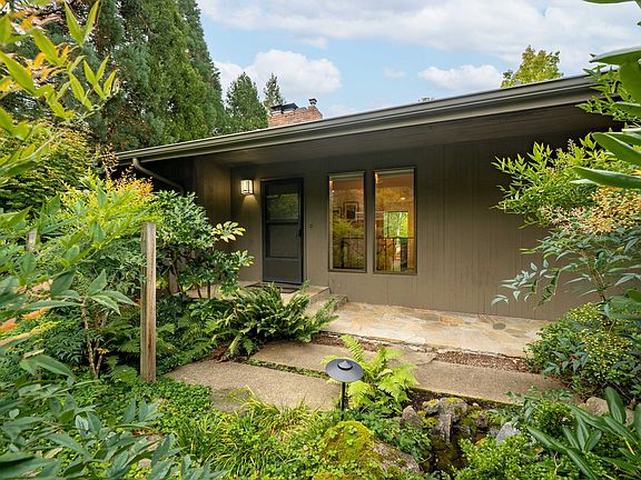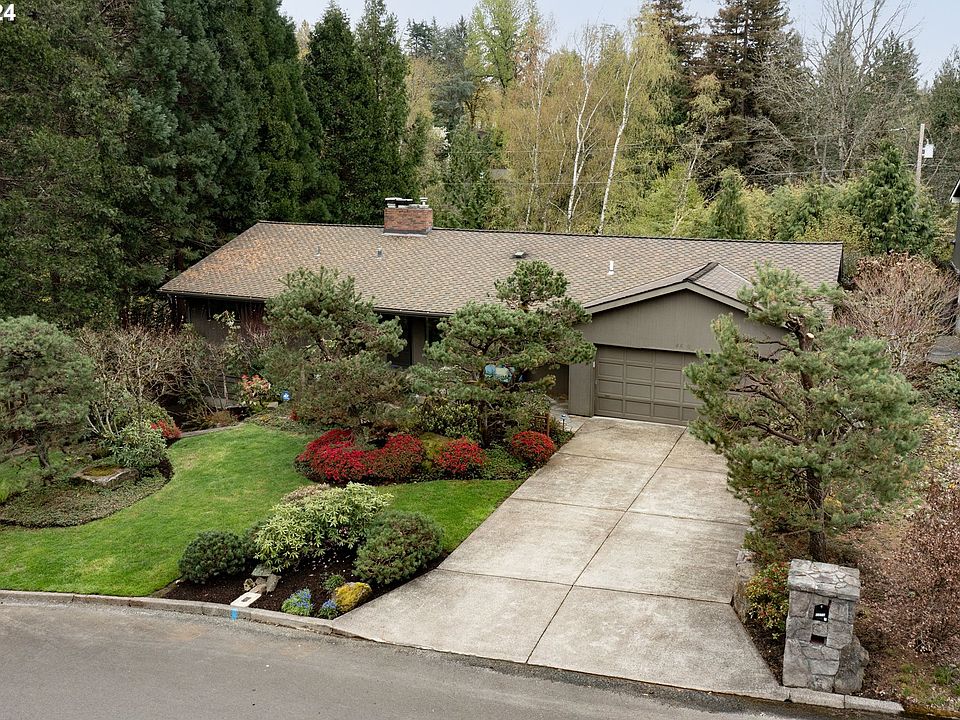 Welcome to this updated mid-century ranch in desirable Washington County, nestled on a peaceful street in Raleigh Hills. The large lot features beautiful mature landscaping, creating a serene retreat. Close to New Seasons, Fred Meyer, top schools, and convenient to Providence St. Vincent, Nike, Intel, and Hwy 26. Equidistant from Mt. Hood and the Pacific Ocean. The spacious interior includes a living room with a fireplace, a chef's kitchen with new appliances, and a deck overlooking a private backyard with a waterfall. The main floor offers the owner's bedroom, an office/second bedroom, and a freshly painted bathroom. The lower level has a large bonus room, guest bedroom, bathroom, laundry, storage, and potential 4th bedroom. The oversized 2-car garage has direct access to both levels. Recent upgrades include new paint, wood floors, light fixtures, kitchen counters, and more!