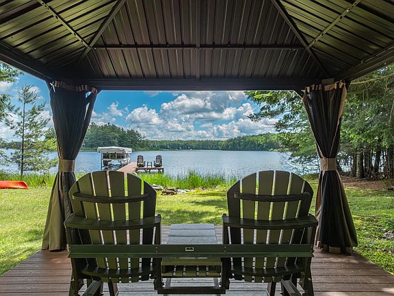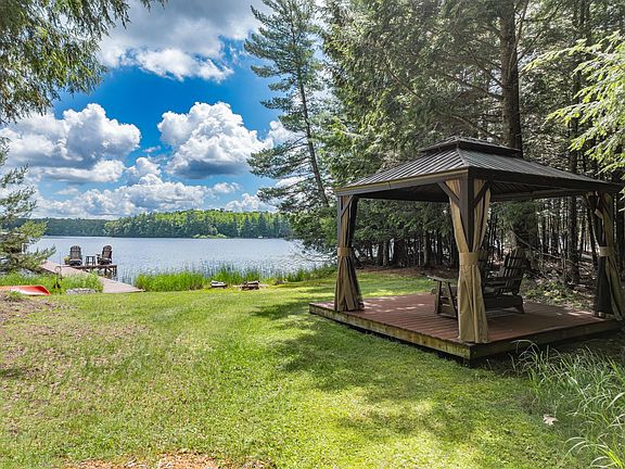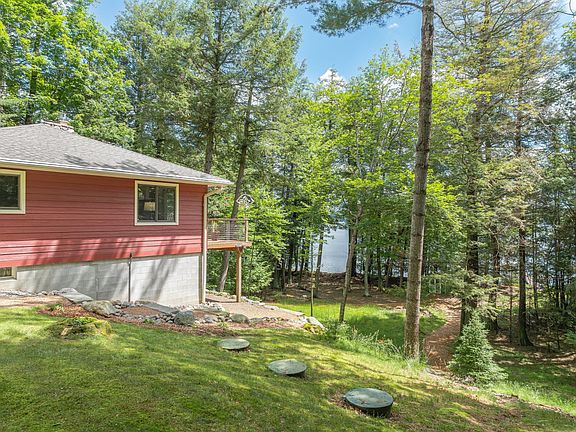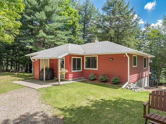 This fully remodeled 3 bedroom home is nestled among the towering pines on 3.29 acres on peaceful Virgin Lake. Professionally landscaped walkway leads to 220 ft. of level sand frontage, an inviting screened gazebo, cedar pier. Key interior upgrades feature designer kitchen with custom cabinetry, granite, stainless steel appliances. The living room focal point is the fieldstone fireplace & excellent water views . Three sets of sliding doors lead to the maintenance free deck, bringing in the morning sun. Main level has 2BR, an updated full bath with steam shower. The walkout lower level offers a large family room with craft area, free standing gas stove, full bath, 3rd bedroom. Loads of storage in the 30' x 30' pole barn, detached 2 car garage with a dog run, lean-to. See Feature Sheet for upgrades of newer forced air furnace with AC/, siding, roof/gutters, septic tank, windows, flooring, deck. Nearby to Nicolet Nat'l Forest, golf, ATV & snowmobile trails. A special place to call home!