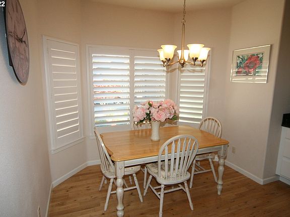 Quiet location. This home Boasts a gorgeous island kitchen with Granite tops, Black appliances contrast nicely with the freshly painted white cabinets, breakfast nook and tall ceilings throughout. Spacious primary bedroom with ensuite along with 2 other generous sized guest bedrooms. Living room has an electric fireplace with gas stubbed in for that option. Private covered back patio with nicely planted landscaping includes a rock garden for enjoying the outdoors. Garage has cabinets and a sink