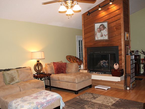 This home qualifies for USDA 100% financing, with NO MONEY DOWN, NO CLOSING COSTS! New floors throughout. New counter top in kitchen refinished cabinets and hardware and new back splash, new garage door, new fixtures and outlets, added on sunroom, ceiling fans in all bedrooms and in living room, new air condition system 4-19-11, new microwave and fridge, private deck off master bedroom, master bedroom is extremely large, master bath has large walk-in closet garden tub and separate shower. tree house(wired for electricity) and wood privacy fence in backyard, two pear trees that produce hundreds of pears every year, large shady lot with beautiful oak trees, alarm system, laundry in garage, gas fireplace(cedar siding) with new gas logs, vaulted ceilings in kitchen and living room, separate dining room, screened porch with 2 ceiling fans and doggie door. Sitting area in entrance way Recently repainted outside of house-2012, new wood floors in sunroom, new tile in both bathrooms 2012, new garage door, new carpet and fans on screened porch,new roof, pool with deck. shed