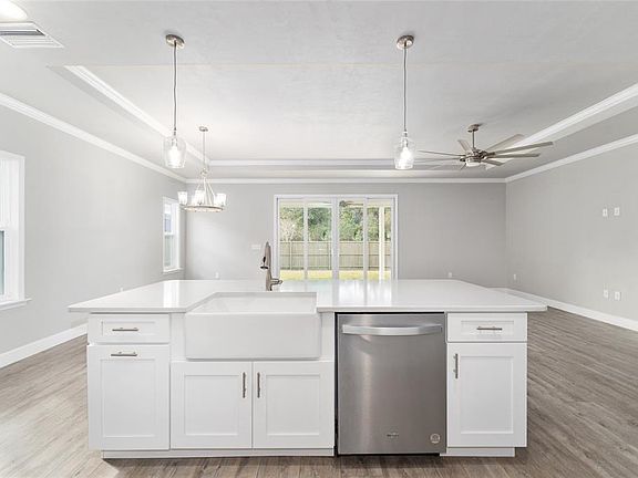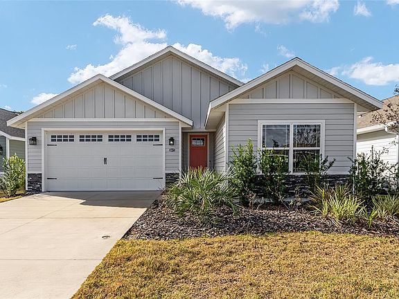 This modified Ashton floor plan features 3 bedrooms and 2 bath and features Hardiboard siding with joint covers, board and batten finishes, decorative stone, 30 year architectural Weatherwood color shingles, 8ft stamped carriage house style garage doors with hinges and handles, covered porches, low maintenance soffits, 2x6 facia, front lawn professionally designed landscaping with easy care zoysia grass and fully fenced backyard. Everything is beautiful as you step inside the 8ft doors. The 9ft ceilings with tray in the living room and owner suite and crown molding. There are NO CARPETS with Luxury Vinyl Planking in main rooms and bedrooms and ceramic tile in most wet areas. Kitchen and baths boast shaker style soft close wood cabinets and quartz countertops. All of the appliances convey including newer Samsung washer and dryer. Tile backsplash completes the upgrades finished included in home. Smart features include smart panel, thermostat, keyless entry, doorbell and garage door. Also included are R31 in attic and R13 in walls insulation, heat barrier in attic, 10 ft 3 way slider to 25.8ft x 8ft covered back porch, 15 SEER HVAC, low e vinyl window, gas tankless water heater. Grand Oaks is convenient to Celebration Point, Butler Plaza, UF Health, The University of Florida, NFRMC, I75, and the Archer Braid Trail with only a short distance to 441, Paynes Prairie Preserve, Sweetwater Wetlands, Downtown Gainesville, The Hippodrome Theatre, Center for the Performing Arts and so much more that Gainesville and the surrounding areas provide. Grand Oaks is a pool community with a covered pavilion and playground.